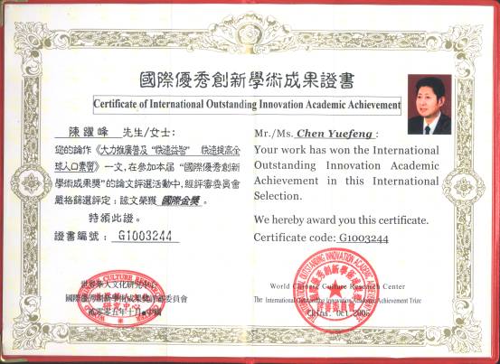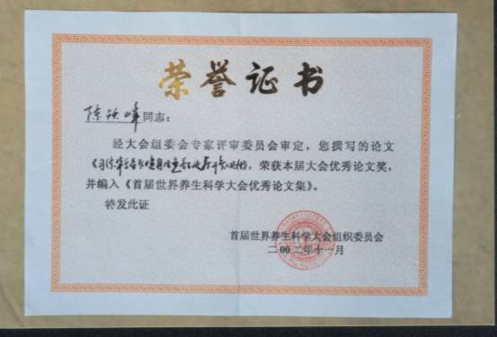 首届世界养生科学大会由国际老龄联合会、国际养生保健学会、中国老年学学会、中国中药协会、中国老年保健协会等单位联合举办,大会专家评委会通过“免收评审费”、“公平、公开、公证的评选”,《习练“华智操”是养生延寿益智的捷径》被评为国际优秀论文奖(未评等级奖)。