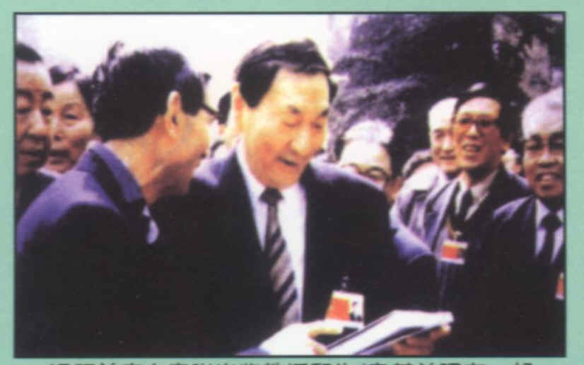 朱镕基总理亲切接见课题首席专家、著名思维科学家张光鉴教授(左一)