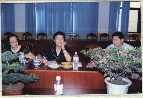 中央电视台委派总编室主任编辑、《东方时空》编导,特约记者、中国文联作家等一行4人到江苏东台拍摄"快速益智”专题电视片,并在“中国新闻”栏目播发了《陈跃峰主持"快速益智”教学实验10年成绩裴然》的新闻。图为习亚起(中)、李路阳(左)采访“快速益智”教研室主任及其研创人陈跃峰(薛峰)先生。